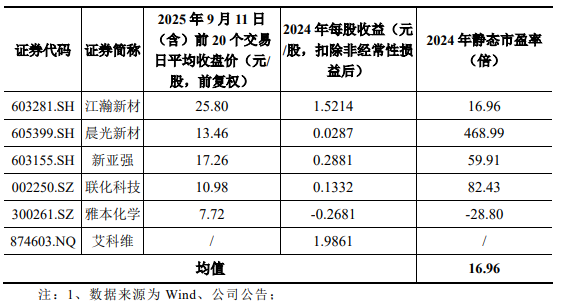 估值方面从同类可比公司来看上面6家可比公司2024年的扣非静态市盈率均高于锦华新材。